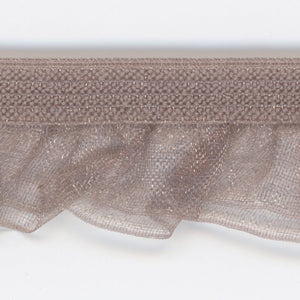 This is the Layered Frill Stretch from SHINDO (S.I.C.). It is an elastic frill tape made of sheer organdy layered in two layers of different lengths, and it has a luster and lightness that only nylon material can provide, and it goes well with thin body fabrics. It is recommended for use in casual clothing and general merchandise. Three meter-cut products are sold as samples to check the actual product or for prototypes. Please be sure to check the actual product with a three meter-cut product before purchasing in a roll.