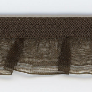 This is the Layered Frill Stretch from SHINDO (S.I.C.). It is an elastic frill tape made of sheer organdy layered in two layers of different lengths, and it has a luster and lightness that only nylon material can provide, and it goes well with thin body fabrics. It is recommended for use in casual clothing and general merchandise. Three meter-cut products are sold as samples to check the actual product or for prototypes. Please be sure to check the actual product with a three meter-cut product before purchasing in a roll.