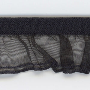 This is the Single Frill Stretch from SHINDO (S.I.C.). This elastic ruffle tape has two lines on the edge of a sheer organdy ruffle, emphasizing the lines of the ruffle even more. It has the luster and lightness that only nylon materials can offer, and is compatible with thin body fabrics. It is recommended for use in casual clothing and general merchandise. Three meter-cut products are sold as samples to check the actual product or for prototypes. Please be sure to check the actual product with a three meter-cut product before purchasing in a roll.