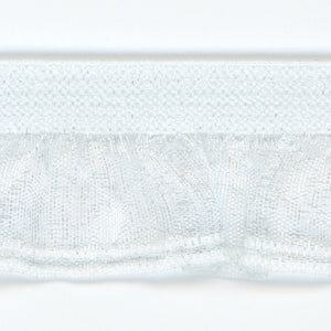 This is the Single Frill Stretch from SHINDO (S.I.C.). This elastic ruffle tape has two lines on the edge of a sheer organdy ruffle, emphasizing the lines of the ruffle even more. It has the luster and lightness that only nylon materials can offer, and is compatible with thin body fabrics. It is recommended for use in casual clothing and general merchandise. Three meter-cut products are sold as samples to check the actual product or for prototypes. Please be sure to check the actual product with a three meter-cut product before purchasing in a roll.