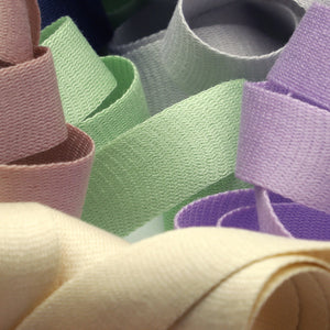 This is the Cotton Knit Tape from SHINDO (S.I.C.). Fine and lustrous 100% cotton yarn is delicately woven into a high-grade knit tape, which is characterized by an elegant luster and soft and gentle touch, not to mention the natural feeling that only natural materials can provide. It is recommended for use in casual clothing and general merchandise. Note: 9x9mm is binder (bifold) type. Three meter-cut products are sold as samples to check the actual product or for prototypes. Please be sure to check the actual product with a three meter-cut product before purchasing in a roll.