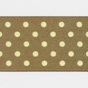 Dot Print Ribbon (Double-Face Satin) #7 Olive & Grapefruit