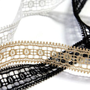 • This is the Leavers Trimming Lace from SHINDO (S.I.C.). Characterized by a dense and detailed square design, leavers lace weaving is a rare technique that requires a high level of technology to produce due to the large number of threads used and the complex structure. It is recommended for women's clothing, dance costumes, interior design and other miscellaneous applications. In order to minimize shrinkage during washing and dyeing, all colors, including unbleached ones, have been treated to prevent shrinkage, so if you've ever had a lace sewn to a fabric that has shrunk after washing, don't worry. Three meter-cut products are sold as samples to check the actual product or for prototypes. Please be sure to check the actual product with a three meter-cut product before purchasing in a roll.