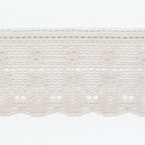 This is the Leavers Trimming Lace from SHINDO (S.I.C.). Characterized by a dense and fine three-ring pattern, leavers lace loom is a rare technique that requires a high level of technology to produce due to the large number of yarns used and the complex structure. Three meter-cut products are sold as samples to check the actual product or for prototypes. Please be sure to check the actual product with a three meter-cut product before purchasing in a roll.
